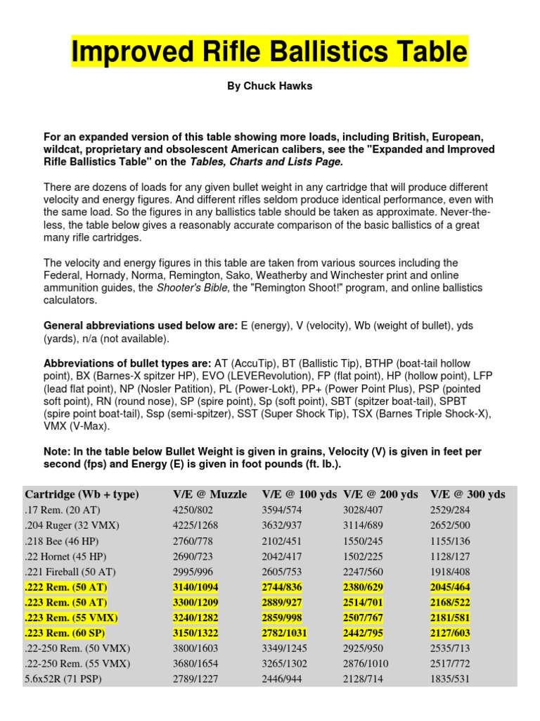 Mpbr values range from 223 yards 60 grain 223 rem.