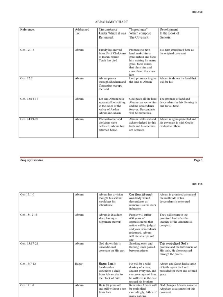 Abrahamic Covenant Chart Doc Document