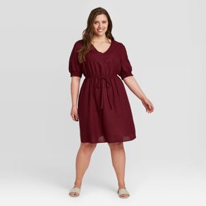 Women S Plus Size Short Sleeve Linen Dress Ava Viv Cabernet Red 3x Target