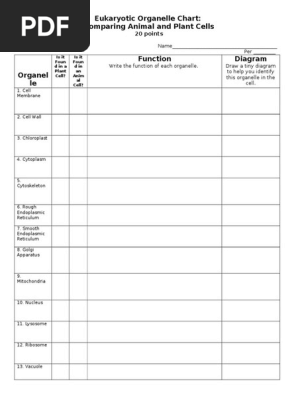 Ch 6 Organelles Chart 2 Pdf Name Function Plant Animal Nucleus