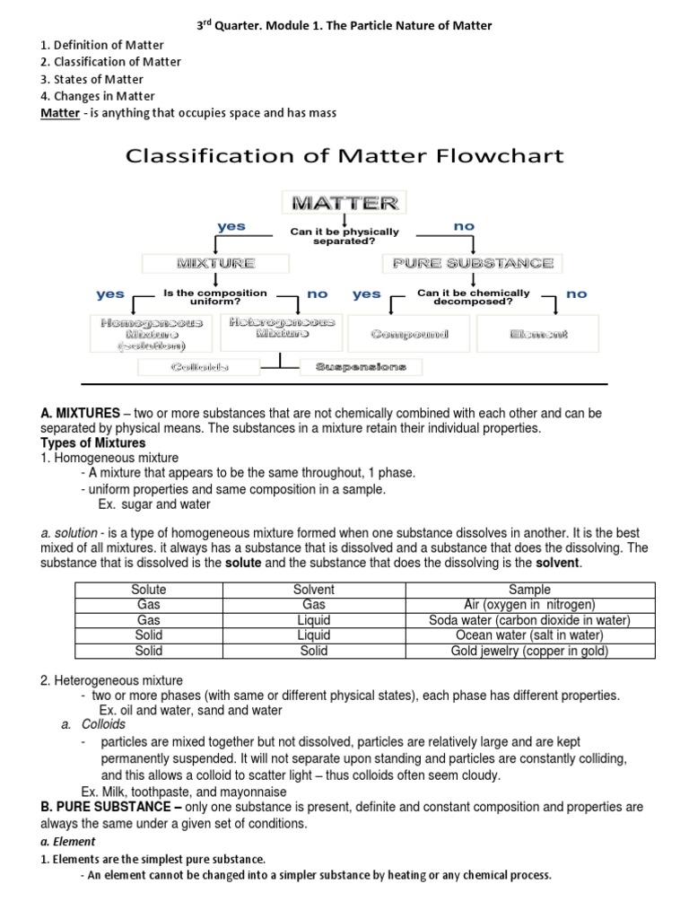 Notes On Matter And Its Classification Grade 11 Chemistry