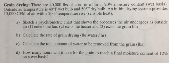 Solved Grain Drying There Are 40 000 Lbs Of Corn In A Bi