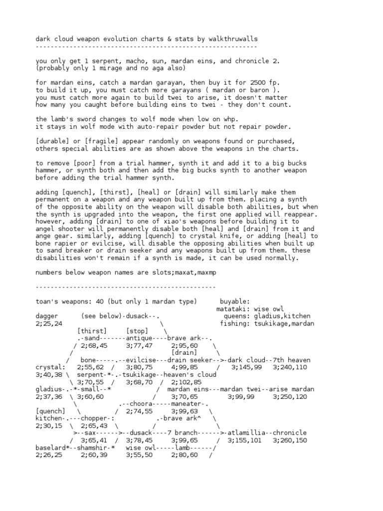 Dark Cloud 2 Max Weapon Build Up Chart For Playstation 2 By Valken Dark Clouds Clouds Dark Chronicle