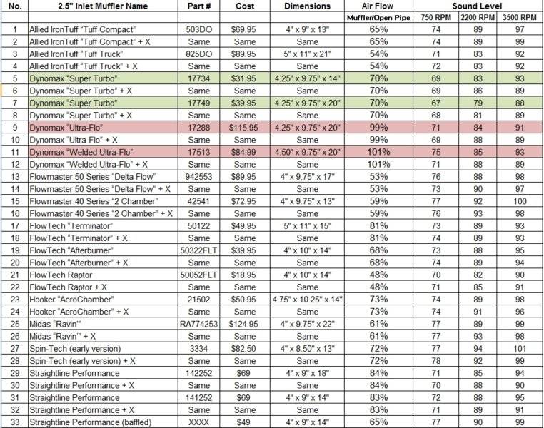 Flowmaster Muffler Chart Gallery Of Chart 2019