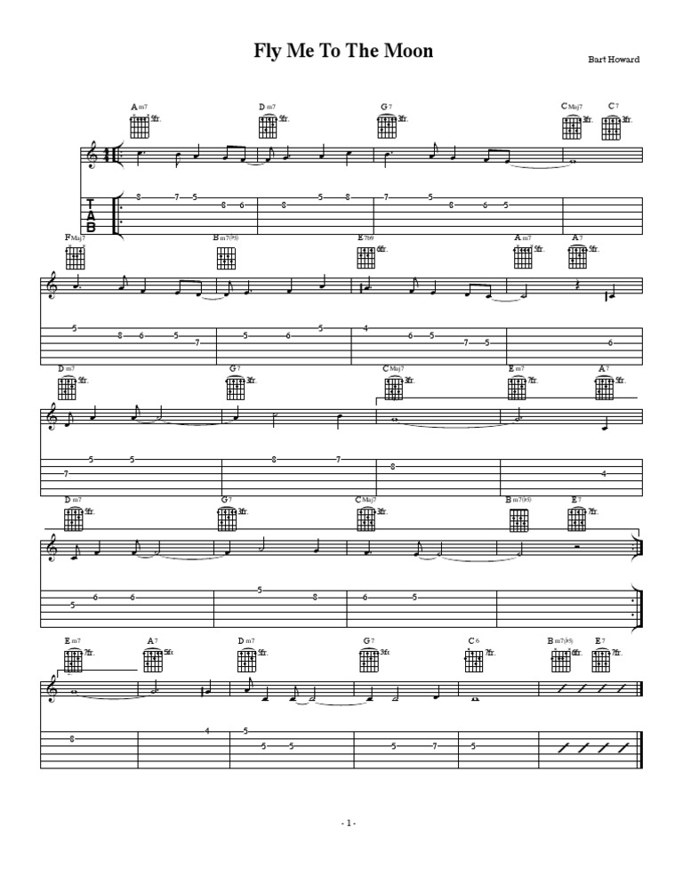 Fly Me To The Moon Guitar Chord Melody Sheet Music For Guitar