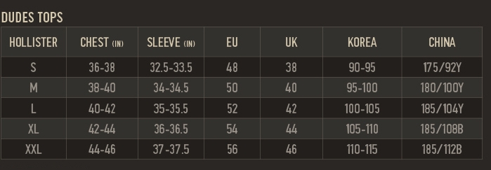 Hollister Size Guide Mens Hollister Mens Shirt Size Guide