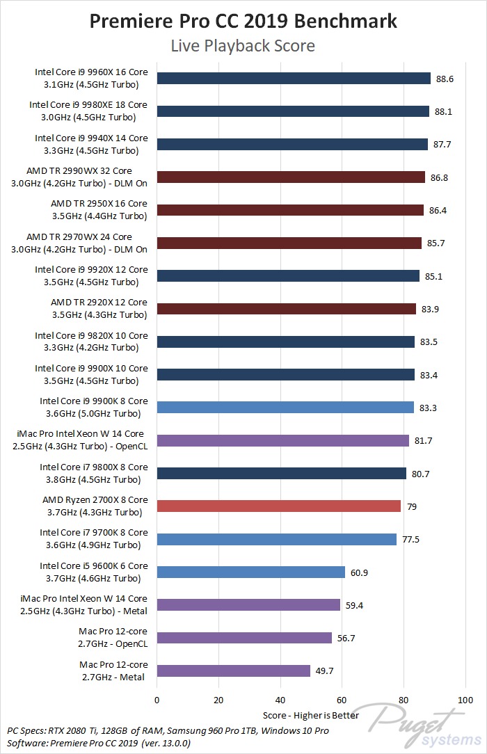 Premiere Pro Cc 2019 Cpu Roundup Intel Vs Amd Vs Mac