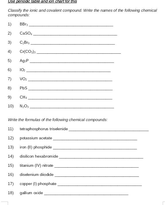 Use Your Periodic Table To Complete The Following Chart For Ionic Compounds Show All Steps Brainly Com