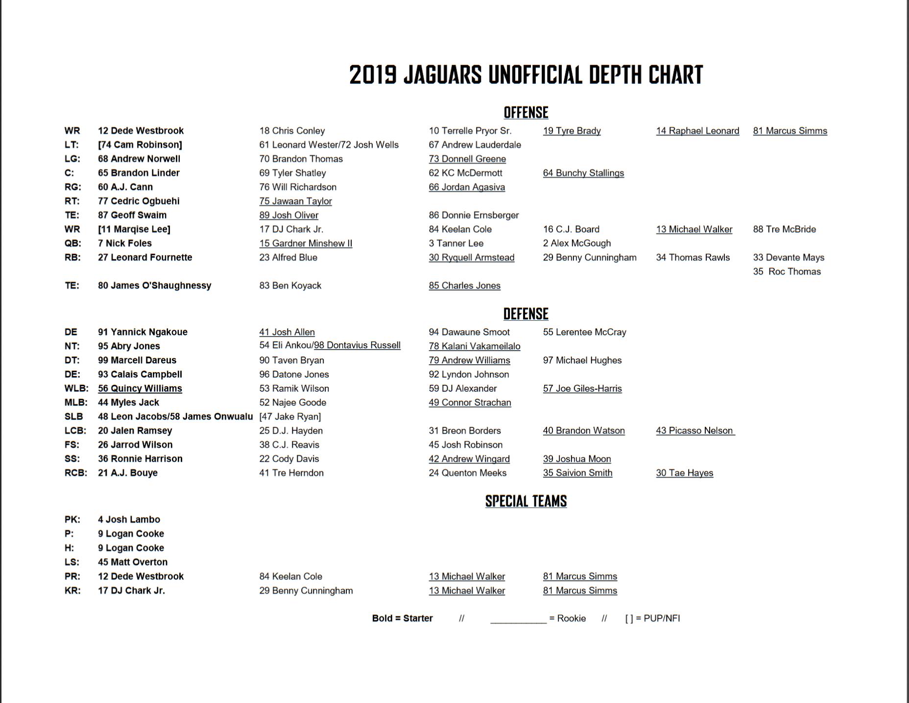 Jaguars 2019 Official Depth Chart Has Few Surprises Big Cat Country