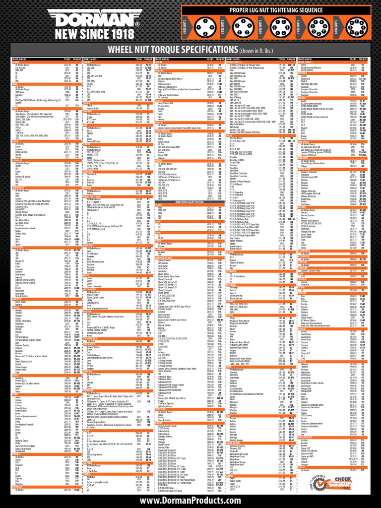 Free Lug Nut Torque Spec Poster From Dorman Products Dorman