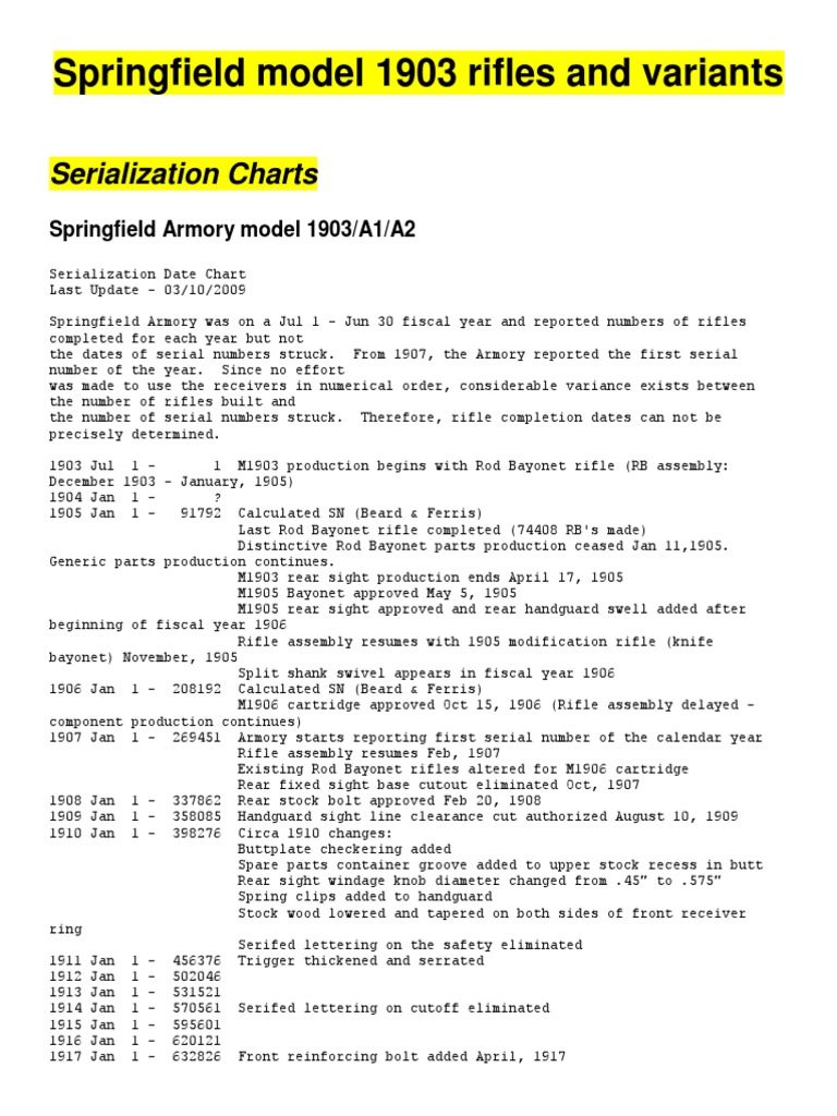 Springfield Model 1903 Rifles And Variants Serialization Charts