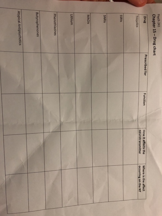 Solved Psych 241 Chapter 15 Drug Chart Drug Prescribed F