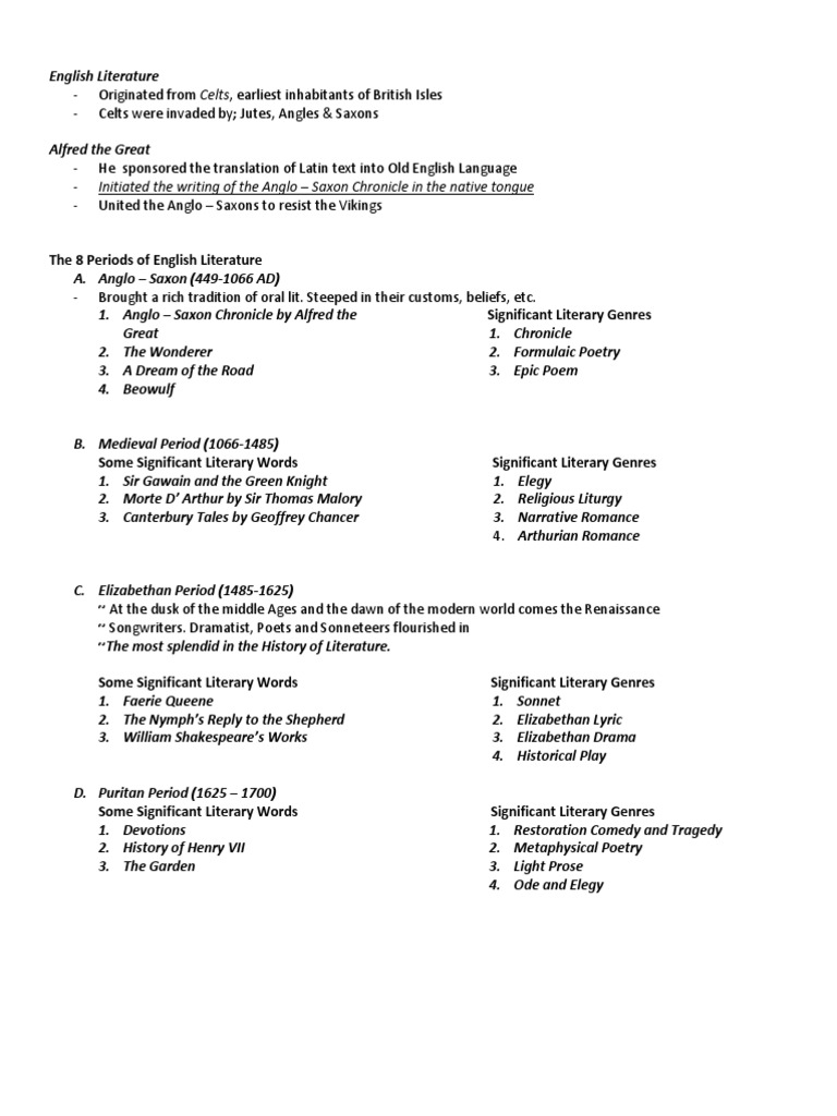 Periods Of English Literature Chart Pdf Aqa As A2 English