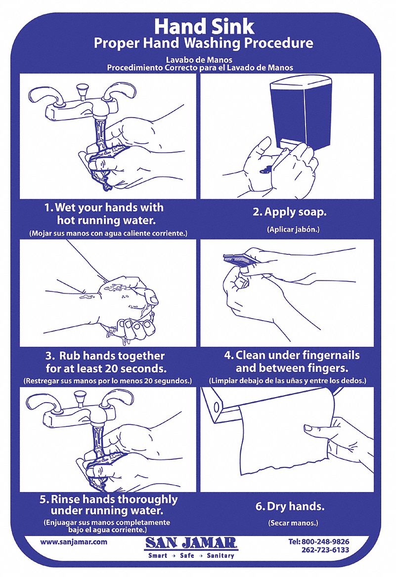San Jamar Hand Washing Chart 7 1 2 X 9 1 4 5way5 Hwwlctgr