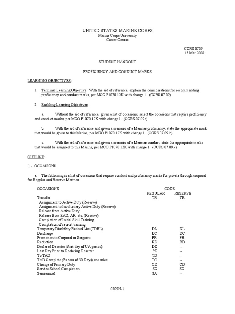 0709 Sh Proficiency And Conduct Marks Military Discharge United States Marine Corps Free 30 Day Trial Scribd