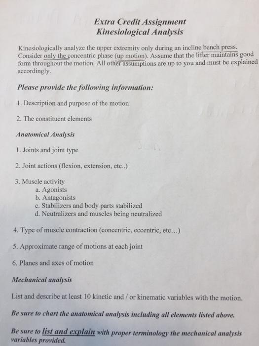 Solved Extra Credit Assignment Kinesiological Analysis Ki