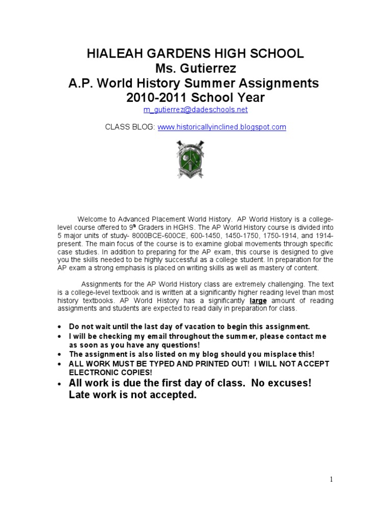 Http Www Freeman Pedia Com S 2015 Ap World Summer Assignment Pdf