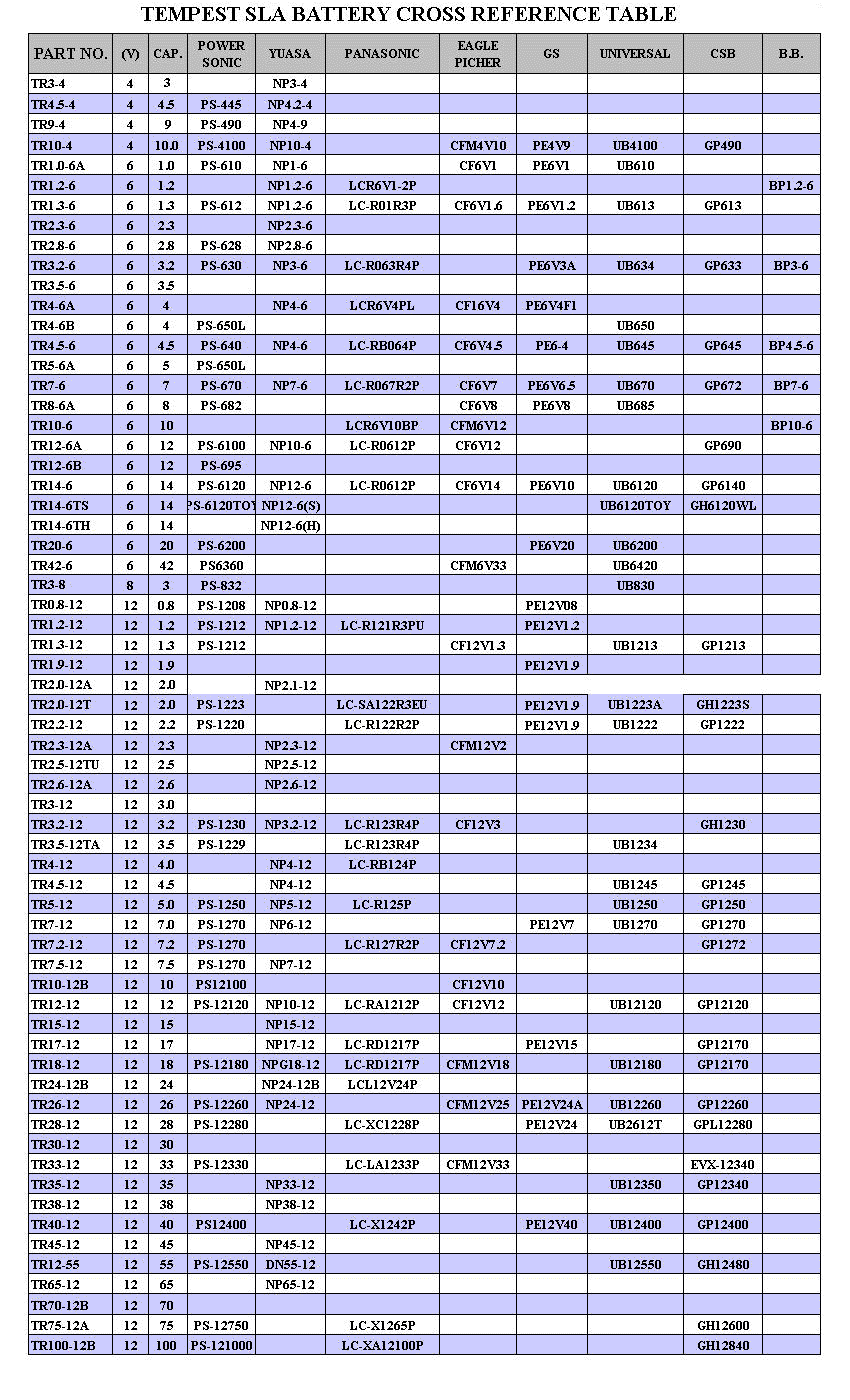 Battery Cross Reference Chart Gallery Of Chart 2019