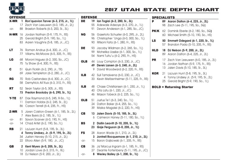 Jason Turner On Twitter Usu Football Here Is The First Depth