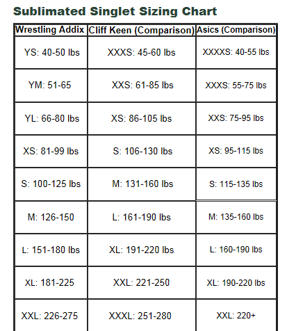 Methacton Wrestling Club Custom Singlet Sizing Chart